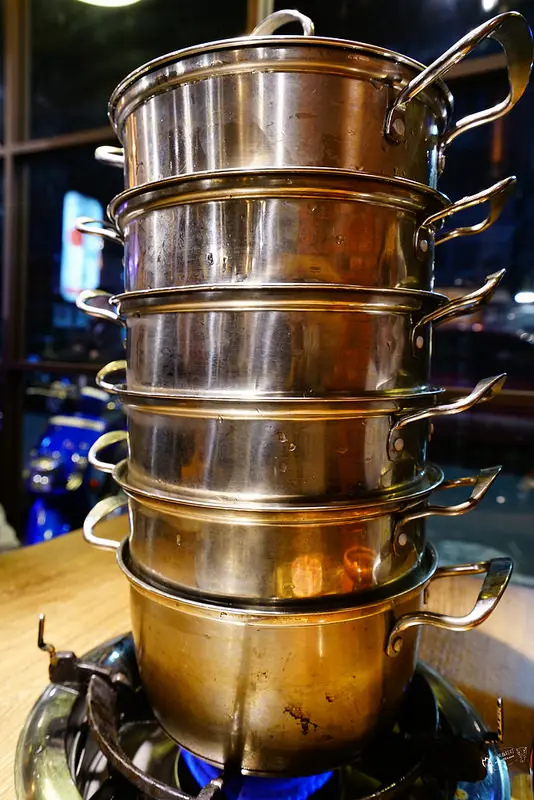 正當我們烤肉吃的差不多的同時,蒸好的海鮮塔也可以享用了