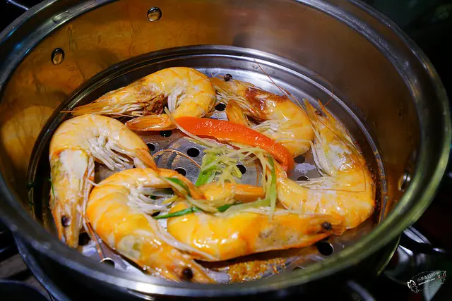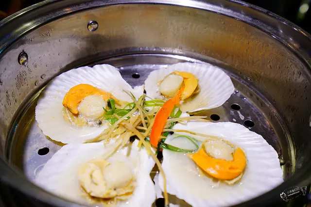 我們一共有現蒸大甜蝦、北海大扇貝、東石大蛤蠣、東港鮮鯛魚、釜山小章魚、精華海鮮粥