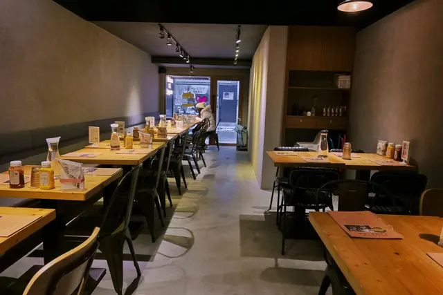 店內佈置就簡單許多,比較內斂沉穩,燈光營造暗色系,與石灰地板的冷色,營造強烈的工業風格,但又不會太過。