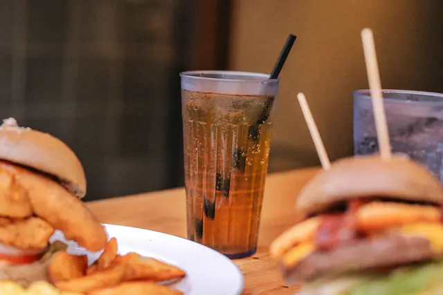 +50元可選續杯飲料,兩個人來當然第一輪一個人要選汽水、另一個人選茶搭配漢堡。