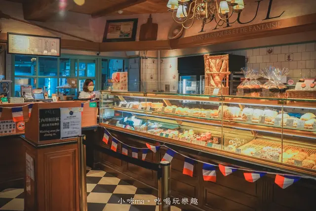 一走進來PAUL法國麵包甜點沙龍就會被他的裝潢深深吸引,原木裝潢配上復古吊燈,連賣麵包的地方都超好拍,這裡每天一早就會陸續出爐手工烘焙的麵包跟甜點,樣式多到會選擇障礙呢