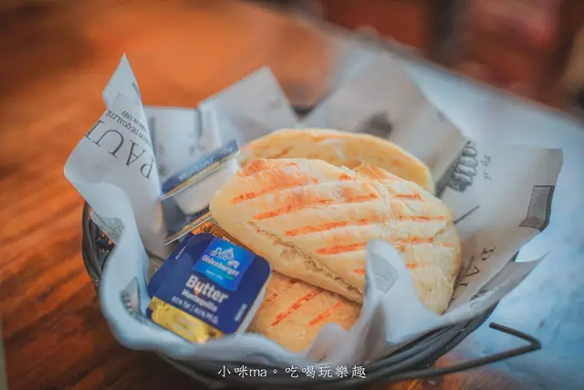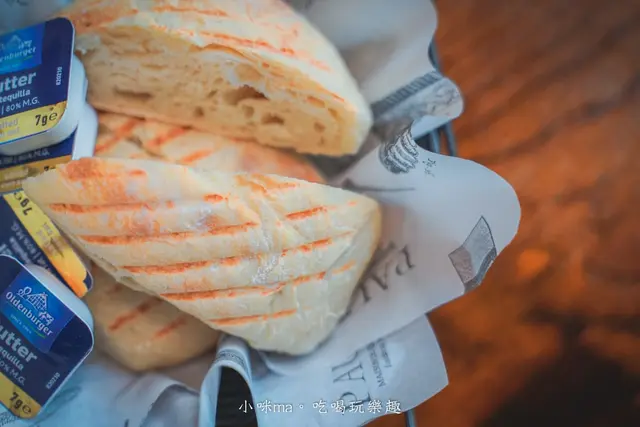 今天的餐前麵包是蜂蜜小保羅,麵包體帶點蓬鬆口感,吃起來有點像吐司,又多了嚼勁,加上奶油真的太涮嘴了,一不小心會整籃吃光光