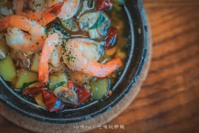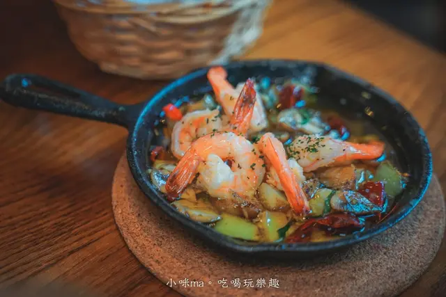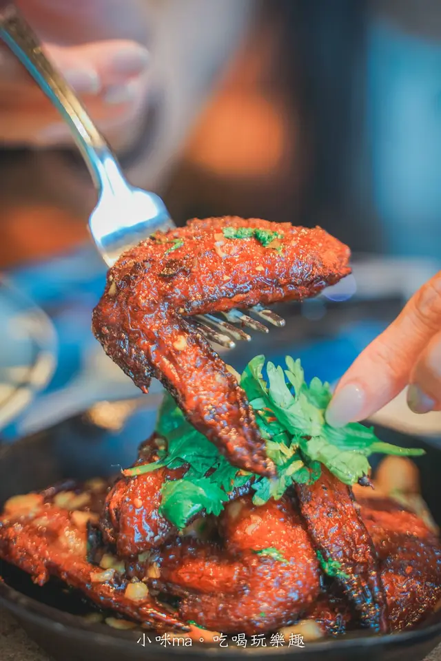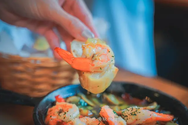 用橄欖油爆炒蒜仁、洋蔥、乾辣椒拌炒蝴蝶蝦,外層裹上蒜香油口感更加滑嫩,每一口都是彈牙鮮嫩的滋味,搭點小酒一起享用更對味啊
