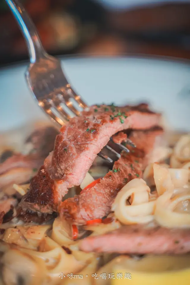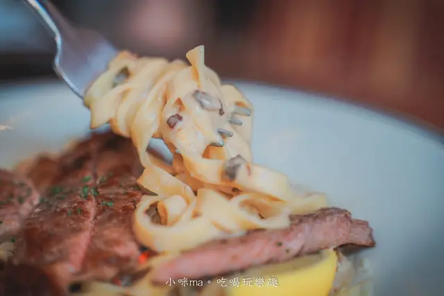 鳥巢麵就是義大利麵的寬麵,吃起來厚實有咬勁,奶醬完全包覆麵條,甜鹹滋味更加濃厚