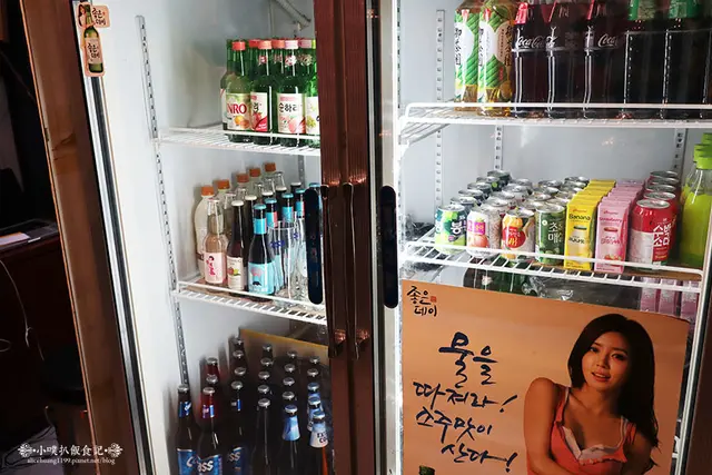店內也有提供各式飲料,有非酒精飲料也有韓國燒酒及啤酒,還有韓國的香蕉牛奶及各式氣泡水