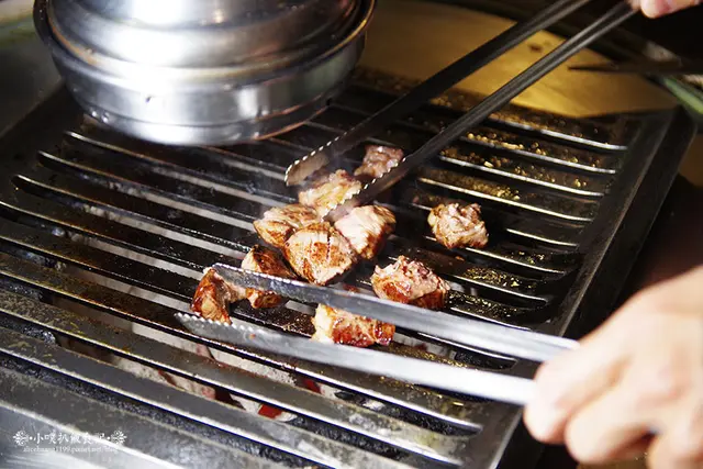 只見服務人員熟練的翻烤肉塊,飄出陣陣的肉香,簡直讓人食指大動啊~~~