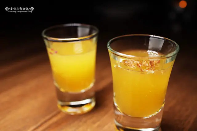 以柳橙及橙片調製而成的水果酒,淡雅清香的水果風味,酒精濃度偏淡,清爽又透清涼