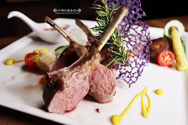 細嫩略帶粉紅色澤的小羔羊排,搭配酒類,十足合拍呢!!!