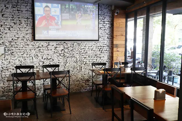 木質的桌椅,搭配木片拼接的牆面,色調感覺相當舒適