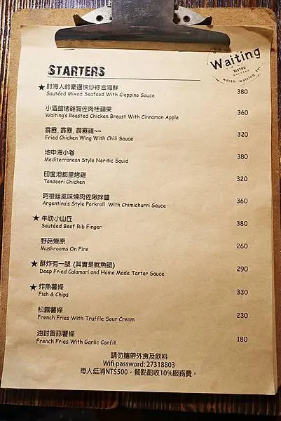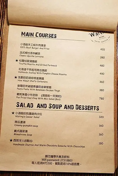 "Waiting Bistro",精心研究多道獨門醬汁及耐心烹調每一道佳餚,堅持使用自己家人朋友也能安心品嚐的食材原料,不怕費工也不計較麻煩,只想讓大家吃得盡興又愉快