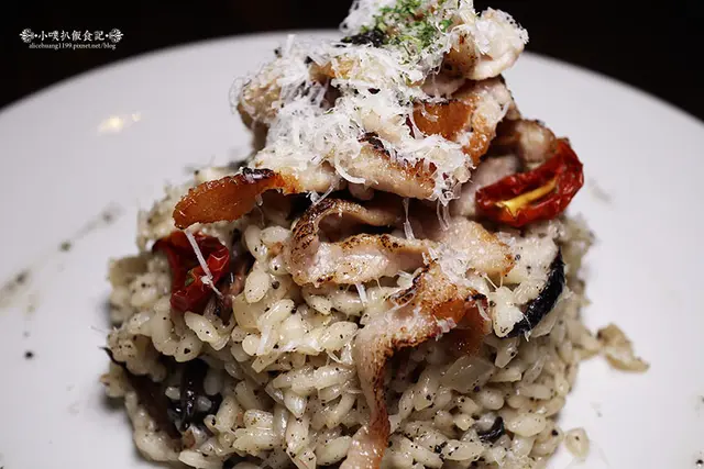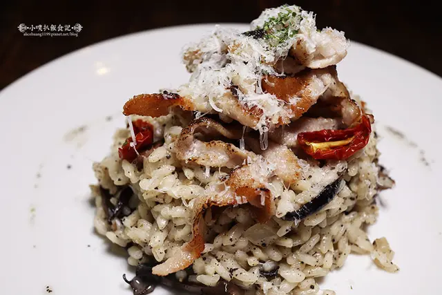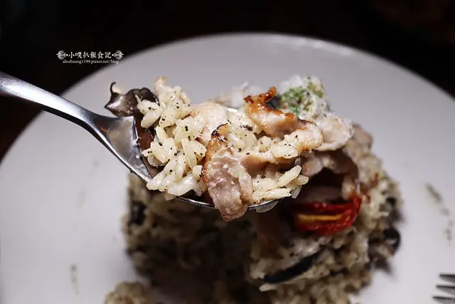 品嚐的每一口,蕈菇、松阪豬、帕瑪森起司、松露,多層次的滋味,都融入在燉飯中的米粒中,滋味相當美味