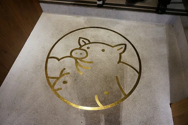 搭配亮黃色的豬圖像LOGO 環境風格很一體