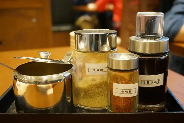 MENU上介紹的吃法之一:撒上細碎的白芝麻一起入口