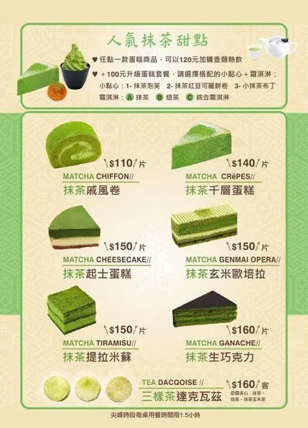 更新前的菜單 鐵板熱蛋糕和熔岩蛋糕是不算在低消裡面的
