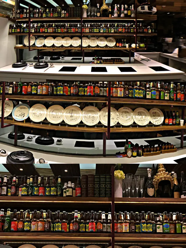 這裡有各式酒類擺設,也有祝賀的賀詞寫在盤子上放在這擺設
