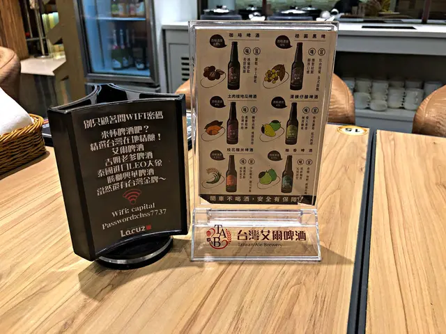 桌上有台灣艾爾啤酒的介紹以及店內WIFI