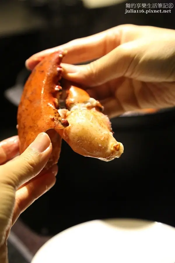 不同於龍蝦肉的緊實彈勁,螯肉特別多汁Q軟