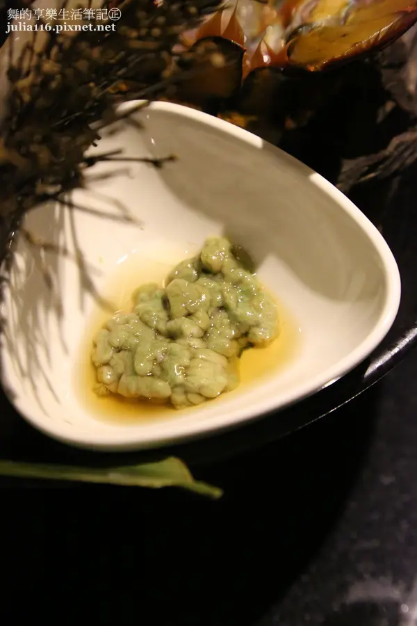 老闆說,綠色的部位是內臟建議不要吃,另外尖端黑色的地方也建議咬掉比較好喔!