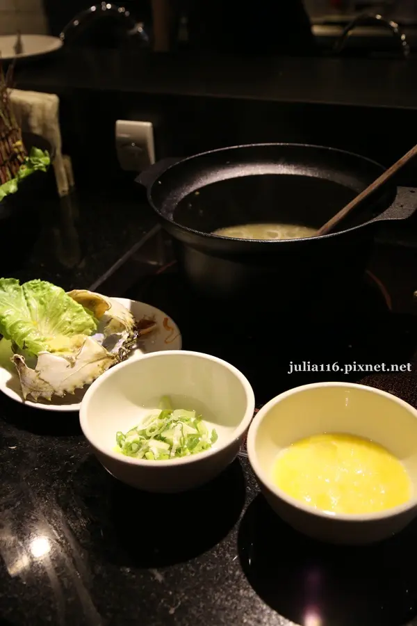火鍋吃完之後還將精華煮成了粥,並且加入蟹膏熬煮!