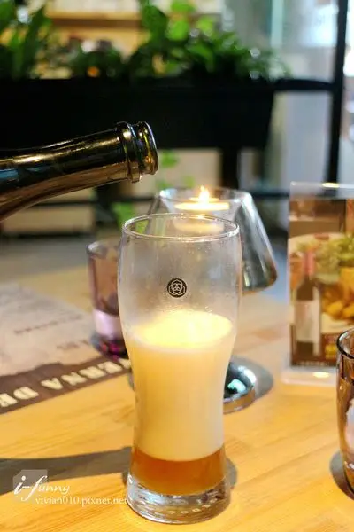 這個來自義大利小村莊的手工啤酒,可見其泡沫相當細緻,