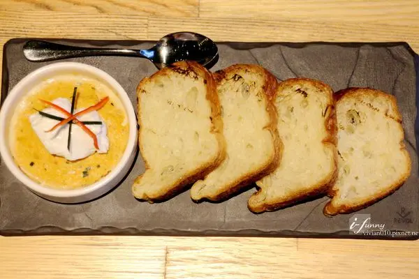 這個烘蛋一上桌就香氣逼人,一旁附了四片麵包。