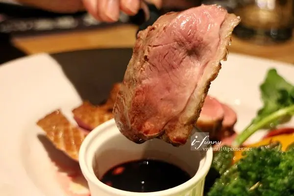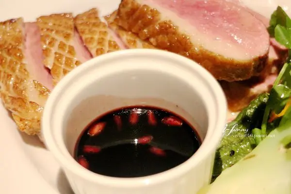 將鴨胸肉沾點特製的石榴醬汁,微酸甜的滋味令口感上多了清爽的感覺。