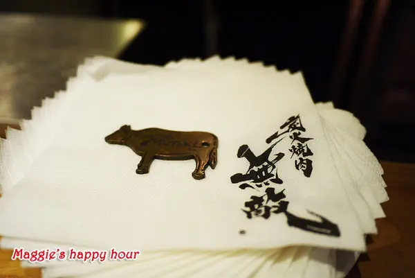 參觀完環境後回到座位上,發現壓住餐巾紙是用和牛的銅製品,挺可愛的!