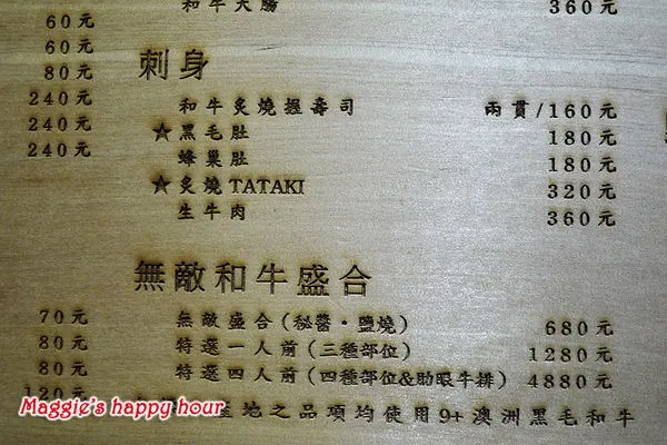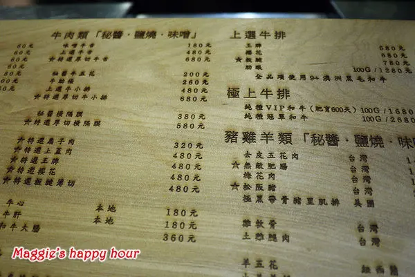 菜單是很大一個木製薄片,第一次見到那麼特別的菜單。