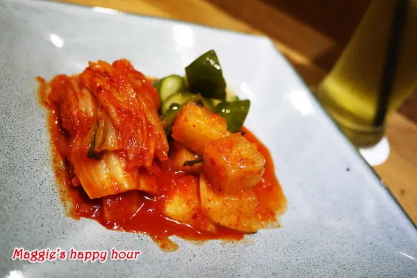 開胃涼菜「泡菜三兄弟」,是主廚精製的小菜,有韓式泡菜、白蘿蔔和小黃瓜,每一種都清脆爽口,酸和辣的味道調製的剛剛好,迅速開胃。