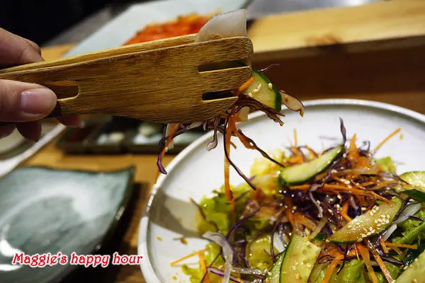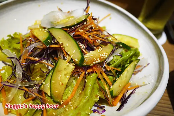 「和風沙拉」選用新鮮清爽的時令蔬菜,搭配和風醬汁和芝麻油再灑上白芝麻提味,聞起來很香嚐起來夠爽口,醬汁的味道調的比例剛剛好,讓我捨不得浪費食物。