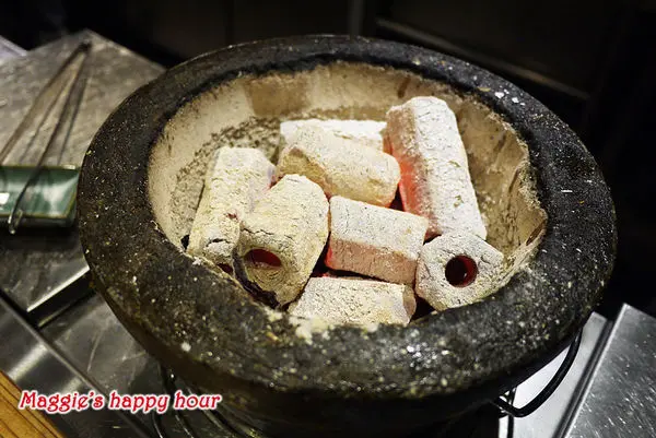 炭火爐在沙拉吃得近尾聲時出現,此刻的木炭已經燒的火紅,隨時可以上場。