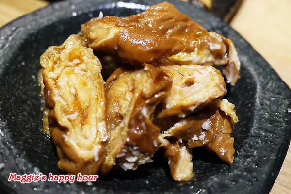 「無敵肥腸」已經滷得十分入味,看起來就蠻好吃的樣子,待上火爐烤過後逼出油脂想必一定很香。