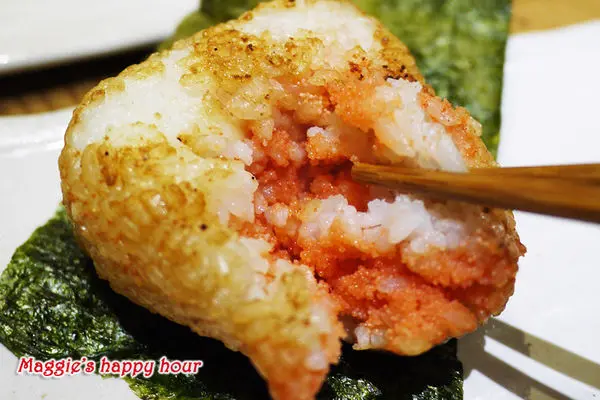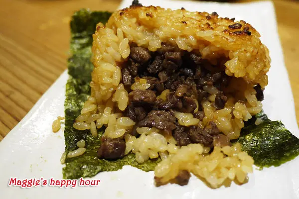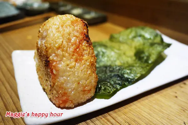 這次體驗的全和牛饗宴令人頗為滿足,不過因為還是來吃晚餐的,少了點主食總覺得飽足感不足,於是另外加點了明太子烤飯糰和祕製燒肉飯糰來做為最後的結尾,送上來時已經在廚房先稍微炙烤成型可即食,不過我還是要求外層要再烤一下呈現鍋巴狀比較好吃!