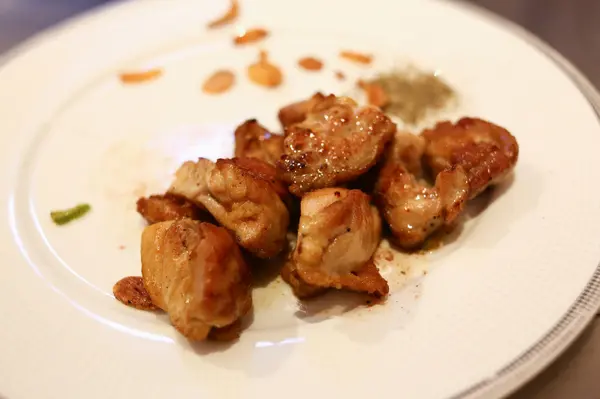 刻意把雞皮煎到金黃酥脆,放山雞不鬆散的肉質口感十分適合用鐵板料理,與AA11牛排恰好相反,雞肉的油質不多每口都紮實好吃。