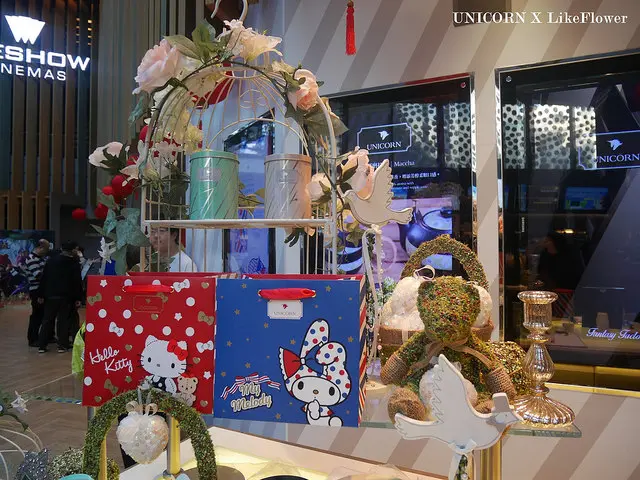 櫃上早已擺上了其中Hello Kitty和My Melody的聯名罐,配上夢幻到不行的裝飾