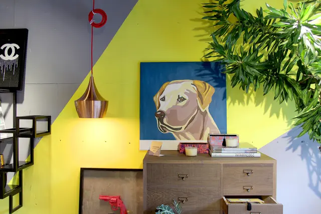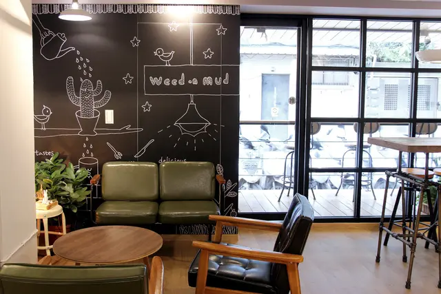 有著創意的Weed on Mud 插畫,和綠色植栽與乾燥花點綴空間。