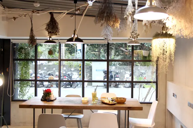 ▼ 80坪的空間一分為二,左半邊即為草泥Cafe,寬敞而明亮,陽光由一扇扇玻璃門窗肆意灑入,