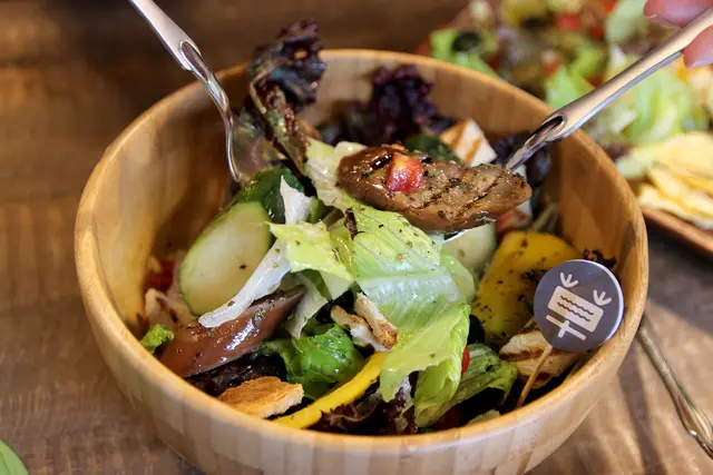 附沙拉醬四選一:自製拉拉山水蜜桃油醋醬、新竹關西金桔醬、義式凱薩醬(葷)、希臘優格醬