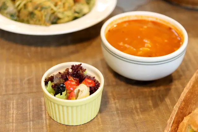 油醋沙拉雖小小一份,但若一個人來無法單點沙拉,點主食義大利麵即能稍微品嚐到生菜,相當不錯。