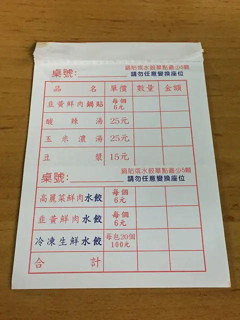 店內販售的主食只有鍋貼和水餃,雖說鍋貼是招牌,我們還是點了水餃來嚐嚐