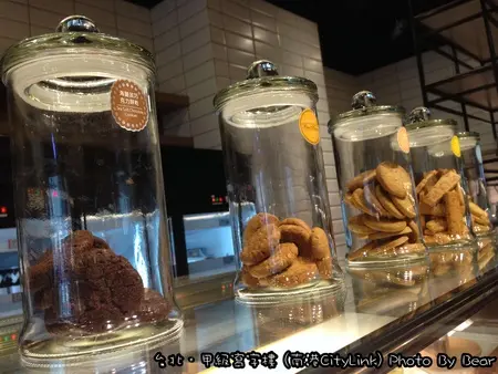 甜點櫃上有用透明罐子裝著的幾款手工餅乾