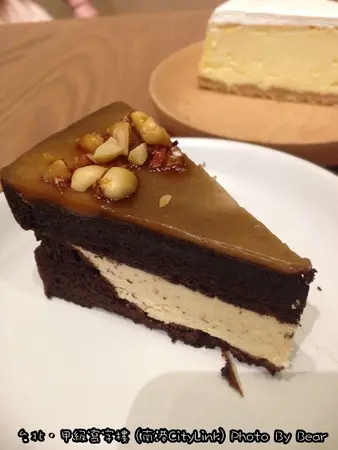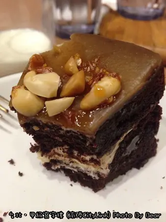 最上層灑上花生顆粒,第二層焦糖色的則是花生醬