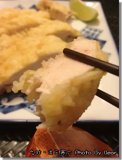 有著淡黃色外衣的雞排,薄薄一層的外衣吃的到日本炸物般麵粉的香氣