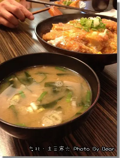 相較於豬排丼的重口味,使用多種食材熬煮的湯頭,喝來就清爽多了唷