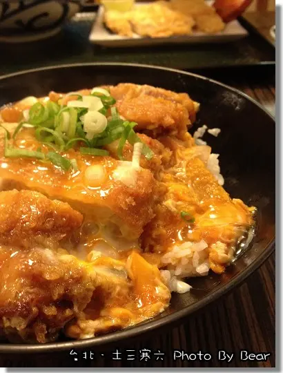 鹹甜的豬排丼,粒粒分明的米飯,和著醬汁和蛋液一起攪拌著吃,好好吃呀~