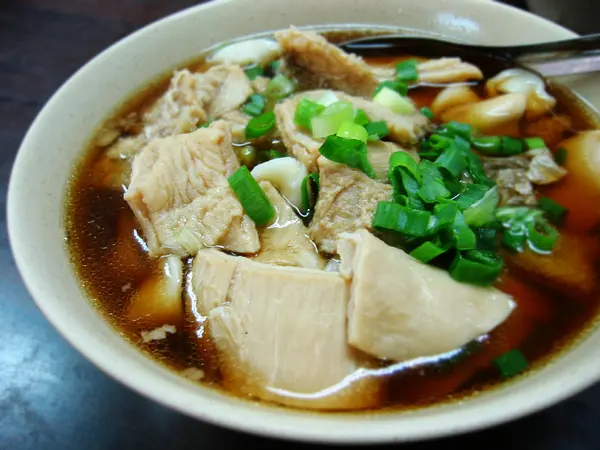 牛肉湯頭看起來顏色偏很清的醬油色,厚度上雖然不能和知名的濃郁層次相比