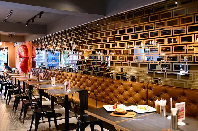 裝潢相當時髦,且充滿巧克力感,不只大片落地窗上流著巧克力漿,沙發及鏡面牆也像極了一塊塊的巧克力。