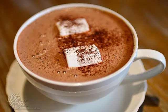 可可甜心使用法國進口72%可可粉及牛奶調配而成的,還放了棉花糖進去,香濃滑順~