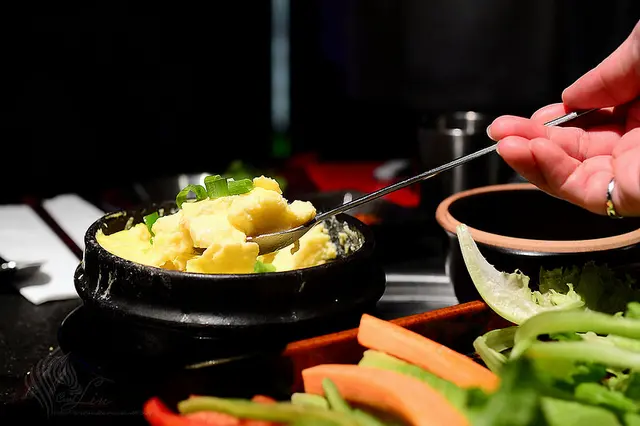 蓬鬆的韓式蒸蛋口感有點像台灣的烘蛋,口感卻更加軟嫩,使用的高湯也是店家從韓國帶回來的秘方,看起來簡簡單單的樸實外表下,其實是道很有味道的鮮甜料理喲!