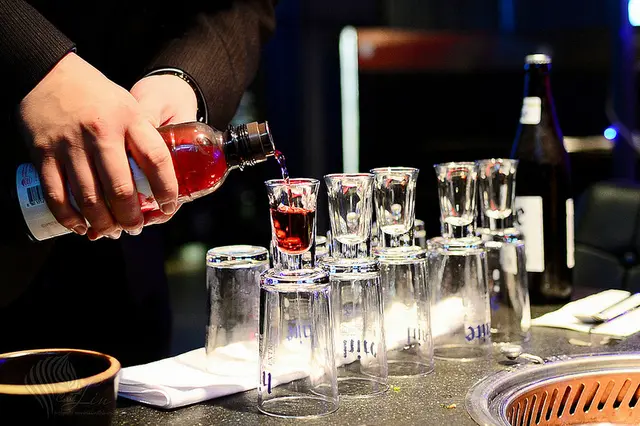 在韓國,據說當地人時常在這個階段就直接開始飲用,於是紅寶石般的石柳醋會在飲用的搖晃中慢慢滲出,成為在金黃色啤酒中緩緩昇起的太陽,模樣確實像極了「日出」。